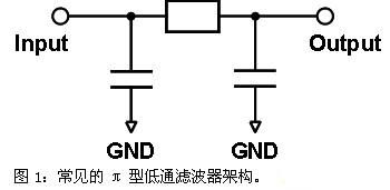 由于電磁干擾濾波器多應用于電子產(chǎn)品的輸出入端口,π型(π-model)低通濾波器架構(gòu)中的Input端點及Output端點對GND的電容,一般會采用靜電放電防護組件,以兼做靜電放電防護之用。