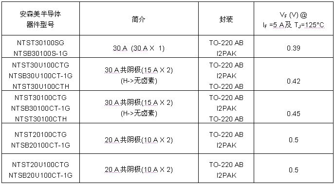 NTSxxx100CTG:安森美100伏溝槽型低正向壓降肖特基整流器