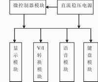 本設(shè)計采用單片機(jī)作為主要控制部件,通過鍵盤預(yù)置輸出電流值并采用液晶模塊實時顯示。整個系統(tǒng)硬件部分由微控制器、電壓-電流轉(zhuǎn)換、鍵盤、顯示、直流穩(wěn)壓電源和語音提示等模塊組成。系統(tǒng)組成框圖如圖1所示。