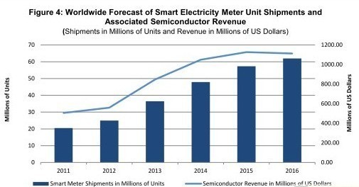 2016年全球智能電表出貨量將是今年的三倍