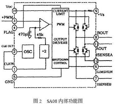 SA08外觀和引腳分布圖見圖1;內部功能圖見圖2 。