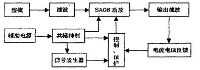 由于將振蕩電路、控制電路、驅動電路和功率器件全部集成于模塊內部;SA08的可靠性大為提高;且接口非常簡潔。樣機電源以SA08為核心;由整流電路、輔助電源、中頻信號發生器、反饋控制電路和輸入輸出濾波電路等部分構成。原理圖見圖3。