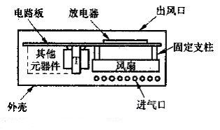 風(fēng)扇M固定在電路板下方,風(fēng)扇中心正對(duì)著放電器,相距15mm左右。風(fēng)扇的出風(fēng)方向應(yīng)朝上,以便將放電器產(chǎn)生的負(fù)離子向上吹到空氣中。整機(jī)應(yīng)裝入絕緣外殼中,在外殼上面正對(duì)放電器的位置開(kāi)一些孔縫作為出風(fēng)口,在外殼兩側(cè)靠近風(fēng)扇的地方開(kāi)孔作為進(jìn)氣口。12V電源線與汽車點(diǎn)煙器插頭相連接。
