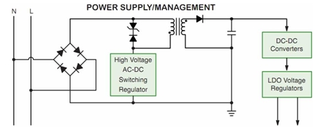 其中,就電源及電源管理模塊(參見圖 1)而言,半導(dǎo)體廠商提供的產(chǎn)品包括高壓交流-直流(AC-DC)開關(guān)穩(wěn)壓器、直流-直流(DC-DC)開關(guān)穩(wěn)壓器/控制器和低壓降(LDO)線性穩(wěn)壓器 等(參見表 1),方便用戶根據(jù)具體應(yīng)用選擇適合的方案。這些電源方案具有高能效、低能耗及豐富保護(hù)特性等特點(diǎn),非常適合智能電表應(yīng)用。