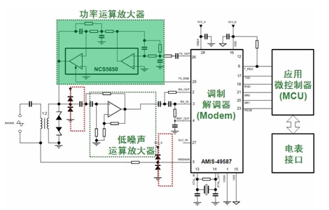 例如,安森美半導(dǎo)體推出了支持 2.4 kb的更高半雙工可調(diào)節(jié)通信速率、符合IEC61334-5-1標(biāo)的AMIS-49587高集成度低功率PLC調(diào)制解調(diào)器方案,以及能驅(qū)動(dòng)高達(dá) 2 A電流的高能效的A/B類低失真線路驅(qū)動(dòng)器——NCS5650,能夠很好地配合智能電表PLC調(diào)制解調(diào)器及線路驅(qū)動(dòng)應(yīng)用。