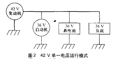 42V電氣系統的單一電壓方案如圖2所示: