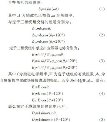 如圖1所示,自整角機(jī)主要由定子和轉(zhuǎn)子組成,定子和轉(zhuǎn)子問(wèn)有很小的空氣隙,自整角機(jī)的激磁磁場(chǎng),是一個(gè)磁場(chǎng)軸線在空間固定于激磁繞組軸線上,磁通密度分布曲線的幅值隨時(shí)間交變的脈振磁場(chǎng)。當(dāng)轉(zhuǎn)子繞組偏離中線位置時(shí),轉(zhuǎn)子激磁繞組所產(chǎn)生的脈振磁通必定和定子各相繞組相匝鏈,因而在定子各相繞組中感應(yīng)出電勢(shì)。