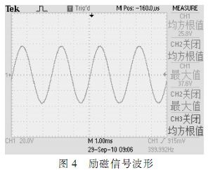 通過(guò)數(shù)字示波器觀察電路勵(lì)磁信號(hào),自整角機(jī)輸出信號(hào)及接口電路變換輸出信號(hào),結(jié)果波形如圖4~圖8所示。
