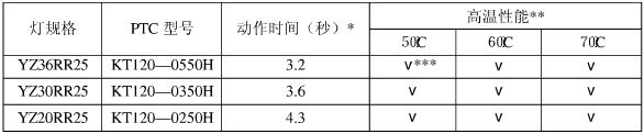 針對以上問題,上海科特高分子材料有限公司開發出KT120-H 系列電子鎮流器專用PTC 熱敏電阻,克服了上述缺陷,能很好解決鎮流器的異常狀態保護問題。