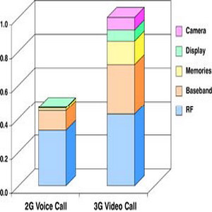 早期的行動電話不是體積笨重龐大,就是必須受到汽車電池的束縛,但經過長時間的發展,今天的行動電話已變得非常輕巧,除了電話功能,它們還會做許多事。新型3.xG 智能型手機把傳統的2G 行動電話和多種其它功能結合在一起,包括PDA、數字相機、音樂播放機(MP3)以及全球定位系統(GPS)。如此多元的功能需要許多零件,其中絕大多數的電源電壓并不相同,電流需求則不斷增加,使得它們需要更多電力。(圖一)是從2G 語音電話升級到3G 視訊電話后,功率需求增加的估計值。