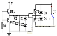 關(guān)互補電路實際上是繼電器的一個旁通電子開關(guān),采用兩只IGBT、兩只二極管構(gòu)成的交流通路,是互補式交流穩(wěn)壓器的主要技術(shù)點,電路如圖3: