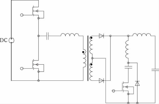 文獻[7]提出不對稱脈沖PWM 控制,其下管下降沿與上管的前沿互補,上管可實現ZVS.只要設計的占空比較小,無需其它措施即使工作在較高頻率下開關損耗也很小。變壓器直流偏磁,除占空比端點外,偏磁電流小于不對稱半橋。寬范圍適用性優于傳統的不對稱半橋。低壓大電流的應用場合有一定的優勢。