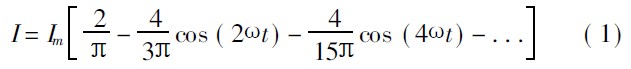 從上式可以看出, I 除了一直流分量之外, 還包含一系列的高頻諧波的交流分量(如圖2 所示波形)。這樣不但影響了電源線上的電流, 并使電流發(fā)生畸變, 同時(shí)也產(chǎn)生射頻干擾。