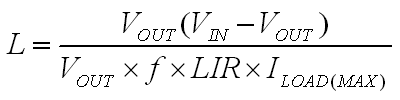 其中,VIN為輸入電壓,VOUT為輸出電壓,f為轉(zhuǎn)換器的開關(guān)頻率,LIR為電感紋波電流與設(shè)計(jì)的最大負(fù)載電流之比,ILOAD(MAX)為最大負(fù)載電流。