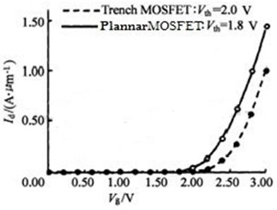 (a) Plannar MOSFET和Trench MOSFET的轉移特性曲線