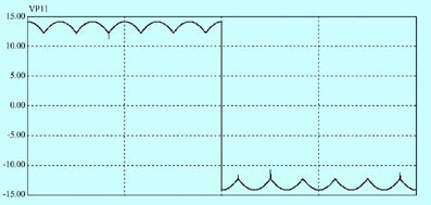 對虛擬整流波形進行斬波控制,便可以得到占空比可任意調節的PWM波形。如圖7所示,是通過SPWM控制得到的輸出波形圖。可以看出它的包絡就是虛擬整流得到的波形。