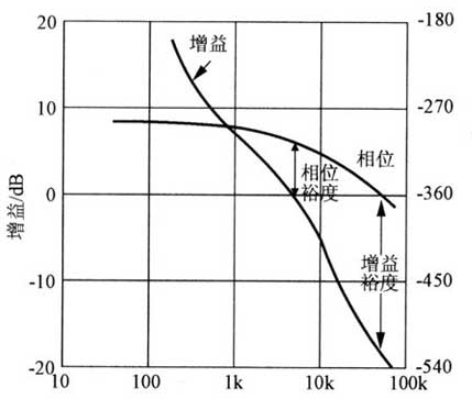 圖2 開關(guān)電源的伯特圖(相位裕度、增益裕度)