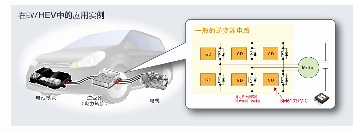 日本知名半導體制造商羅姆株式會社(總部位于日本京都市)開發(fā)出內(nèi)置絕緣元件的柵極驅(qū)動器“BM6103FV-C”,最適合作為電動汽車(EV)和混合動力車(HEV)逆變回路中IGBT以及功率MOSFET的驅(qū)動元件。