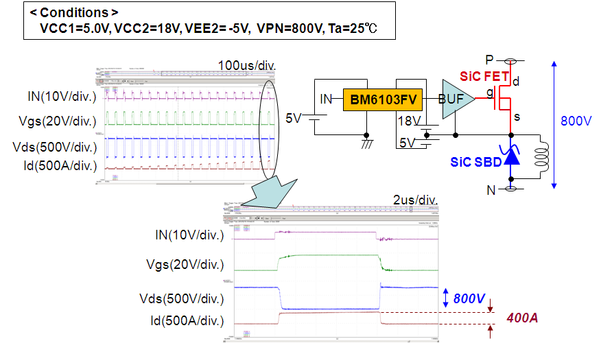 業(yè)界唯一支持SiC元件電路的產(chǎn)品。羅姆生產(chǎn)的SiC可以在最大800V、400A輸出狀態(tài)下確保穩(wěn)定驅(qū)動。