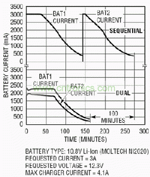 雙電池順序電池充電時(shí)間的對比