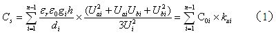 為第層與+1層線圈之間的標準電位差,其值一般等于相鄰兩層線圈工作電壓之和,即:,U為變壓器初級線圈或次級線圈兩端的工作電壓;分別為第層與+1層線圈之間x=0和x=h處對應(yīng)的電位差;當線圈層間按S繞法時,= 0,=;當線圈層間按Z繞法時,