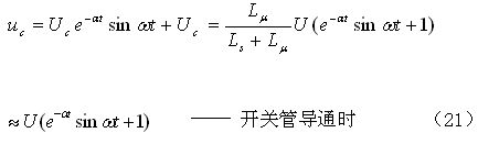 我們從(21)式以及圖3和圖4可以看出:當(dāng)電源開(kāi)關(guān)管Q1導(dǎo)通時(shí),分布電容Cs兩端電壓(也是勵(lì)磁電感l(wèi)v兩端的電壓),由一個(gè)最大振幅約等于輸入電壓U的正弦振蕩電壓與一個(gè)分布電容Cs兩端電壓的半波平均值