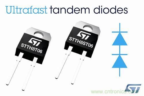 ST第二代600V、8A/12A超高速串聯二極管包括平均正向電流為8A的STTH8T06DI和STTH8ST06DI與 12A的STTH12T06DI,屬于意法半導體600V串聯二極管系列。新產品的正向涌流峰值與超高速二極管相同,確保穩健性和可靠性,工作結溫范圍寬達 -40°C到 175°C。