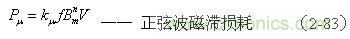 (2-83)式中, 為輸入電壓為正弦波時變壓器鐵芯的磁滯損耗[W]; 為與鐵磁物質有關的系數(由試驗決定);