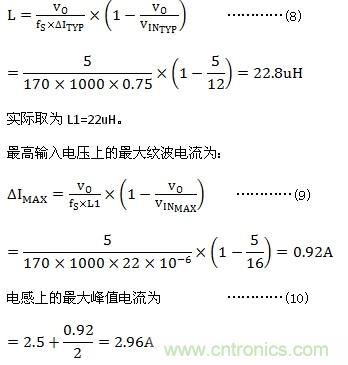 用NCV8852設計USB電源,輸入電壓范圍VIN=5.7~16V,典型值VIN_TYP=12V, 輸出電壓VO =5V, 輸出電流IO=2.5A, 工作頻率fs=170kHz.