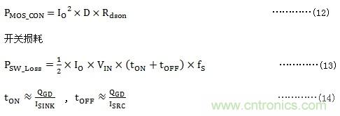 MOSFET承受的最高電壓為 VINMAX , 考慮到拋負載保護,選取耐壓40V以上的MOS。MOSFET的損耗,可由以下公式估算,