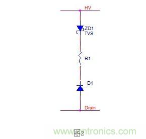 由此式即可計(jì)算出R2的大小,亦可得出R2的功率要求,一般要保證R2的功率要大于此功率(E*f)的1.5-2.5倍。若為TVS則,TVS的功率也要和電阻的功率要求一樣,要大于1.5-2.5*E*f。