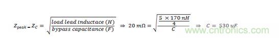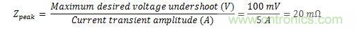 根據(jù)下面的表達式,確定負載導(dǎo)線網(wǎng)絡(luò)的指定峰值阻抗和旁路電容:
