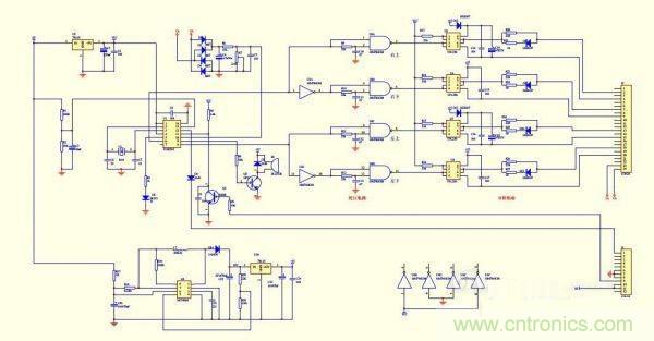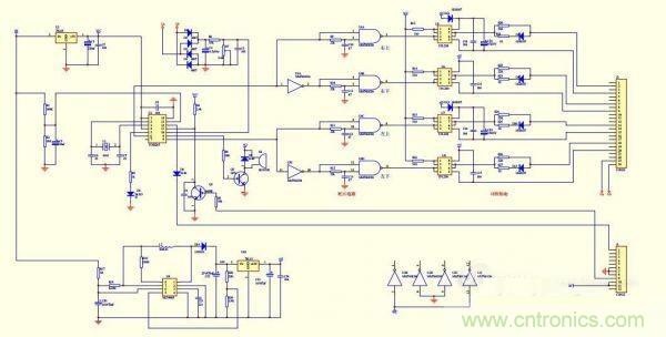 SPWM的核心部分采用了TDS2285單片機(jī)芯片。U3、U4組成時序和死區(qū)電路,末級輸出用了4個250光藕,H橋的二個上管用了自舉式供電方式,這樣做的目的是簡化電路,可以不用隔離電源。