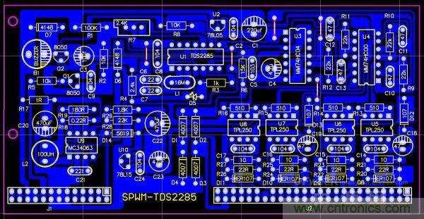 SPWM的驅(qū)動核心采用了單片機(jī)SPWM芯片TDS2285,所以,SPWM驅(qū)動部分相對純硬件來講,比較簡單,制作完成后要調(diào)試的東西很少,所以,比較容易成功。