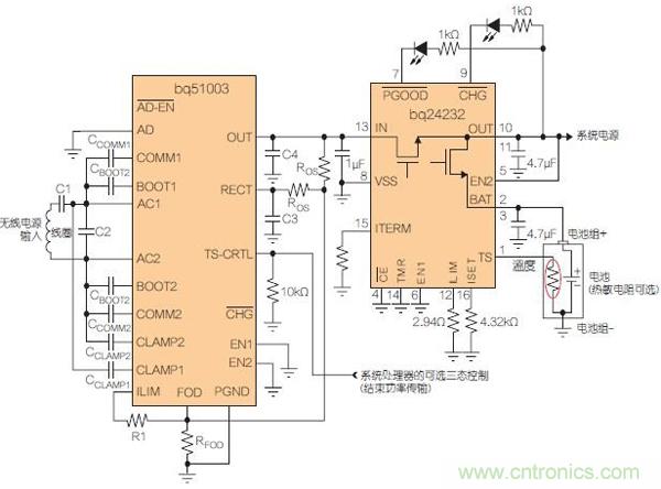 圖4:適合低功耗應用的無線電源接收器(帶電池充電器)