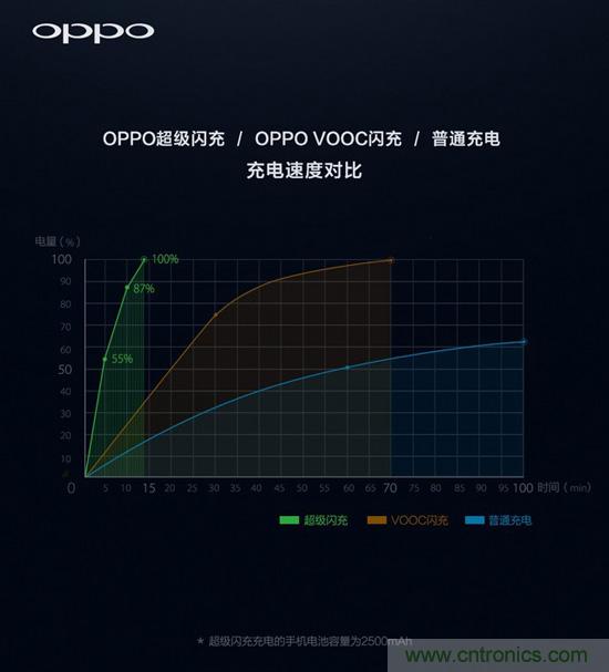 OPPO超級閃充、VOOC閃充、普通充電速度對比
