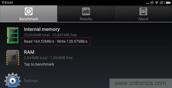聊了這了這么多,UFS 2.0閃存的讀寫速度究竟有多快呢?相信這是不少朋友想要急切了解的。接下來,我們將通過終端產品的實測數據來說話。在專業存儲卡測速工具——“A1 SD Bench”的速度測試中,小米5(高配版)機身存儲(注:UFS 2.0閃存)讀取速度為415.97MB/s,寫入速度則為129.48MB/s。