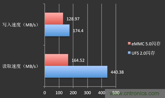 另外,需要指出的是,與電腦不同,除了速度方面的要求之外,移動終端產品對于閃存的功耗要求也比較高。從目前的測試數據可以看到,相比eMMC 5.0閃存來說,UFS 2.0閃存讀取速度更快。換言之,它能夠更快的完成讀取操作,從而更早的回到待機狀態,進而可以一定程度上控制手機的功耗。