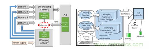 傳統的BMS肯定是拒絕的,但是如果是SDB(software defined battery)就不一定了。傳統的BMS一根充電線進來,給所有的電池充電/記錄/截至,然后再輸出。如果電芯一致性較差,上邊所描述的那些問題就會一一發生。再進一步,如果我們腦洞再開大一點,我在我的電池包里安裝上兩種電池,一種用于應對低速巡航時的低倍率放電工況,另一種用于應對高速急停時的高倍率放電工況。不同的電芯體系具有不同的特點,常考慮的能量密度/功率密度/成本/壽命/柔性等指標也是相互沖突,如果需要在同一模組中使用不同體系電芯,搭配出一個綜合性能突出的產品,傳統的BMS就比較困難了。微軟覺得,這個可以這樣做:給每一個電池都加上一個充電放電管理微裝置(smart switching circuitry),收集每個電池的充放電電壓/電流/電阻,實現智能分流調配,使每個電芯的充放電情況接近于單體電芯,最大化電芯的使用價值。這種電芯管理模式的主要難點在于收集到這些數據之后的分析與電流調配,微軟為之開發了一個比較復雜的算法,并將使用這種電池管理模式的電池包為Software defined battery。