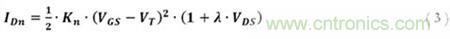 那么該偏置網(wǎng)絡(luò)第N個(gè)柱的MOSFET源電壓是什么,VSN?考慮到工作在飽和區(qū)的NMOS漏極電流等式是: