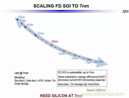 FinFET高昂的開發成本(據Gartner最新數據,開發一款14納米FinFET芯片,費用為8000萬美元左右)使得越來越少的設計公司能夠跟上工藝進步的步伐。物聯網終端產品需求量大,并不要求極致的性能,但對功耗與成本要求極高,FD-SOI工藝成為絕佳的選擇,用沈磊的話說就是“適合的工藝是最好的工藝。”