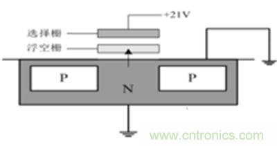EPROM是指其中的內容可以通過特殊手段擦去,然后重新寫入。其基本單元電路如下圖所示。常采用浮空柵雪崩注入式MOS電路,簡稱為FAMOS。它與MOS電路相似,是在N型基片上生長出兩個高濃度的P型區,通過歐姆接觸分別引出源極S和漏極D。在源極和漏極之間有一個多晶硅柵極浮空在絕緣層中,與四周無直接電氣聯接。這種電路以浮空柵極是否帶電來表示存1或者0,浮空柵極帶電后(例如負電荷),就在其下面,源極和漏極之間感應出正的導電溝道,使MOS管導通,即表示存入0.若浮空柵極不帶電,則不能形成導電溝道,MOS管不導通,即存入1。