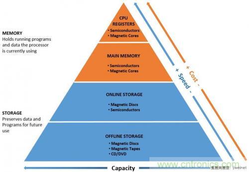 不同于存儲(chǔ)器的是,儲(chǔ)存裝置還可以進(jìn)一步分類為線上或離線。圖1顯示存儲(chǔ)器與儲(chǔ)存的主要特性。