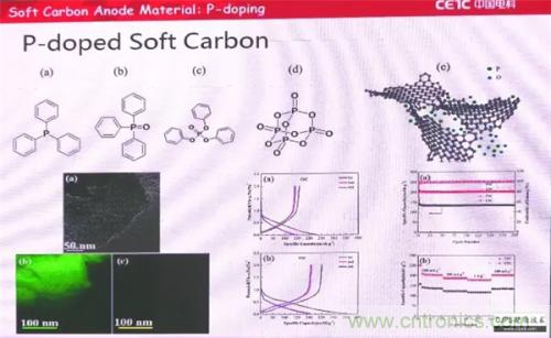 鈉離子電池和鋰離子電池的反應機理相近,正極材料除了磷酸鹽或氟化磷酸鹽以外,還可以用鎳錳層狀過渡金屬氧化物。在負極材料方面可選擇碳類、合金和化合物。在三大類負極材料中,我們還是選擇最便宜的碳材料。我們對于負極碳材料又進行了軟碳、硬碳和石墨烯三個分類的研究。