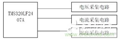 系統的硬件設計主要包括電壓采集電路、電流采集電路和溫度采集電路設計。采集電路以TMS320LF2407A 為CPU。TMS320LF2407A 是TI 公司專為實時控制而設計的高性能16 位定點DSP 器件,指令周期為33ns,其內部集成了前端采樣A/D 轉換器和后端PWM 輸出硬件,在滿足系統實時性要求的同時可簡化硬件電路設計。