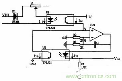 在選擇器件的時候,我們考慮到經濟性和實用性,光電禍合器選擇了日本東芝公司生產的TLP521,運算放大器選擇的雙運算放大器TL082。
