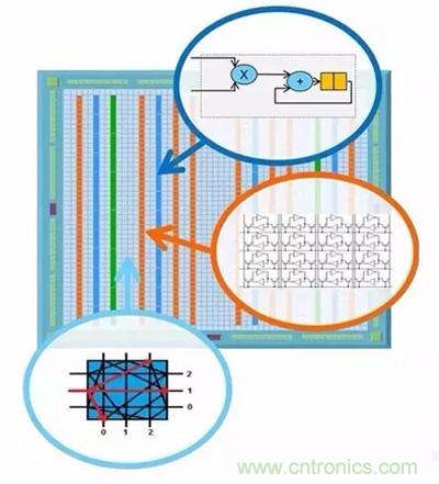FPGA由六部分組成:可編程輸入/輸出單元、基本可編程邏輯單元、嵌入式塊RAM、豐富的布線資源、底層嵌入功能單元和內嵌專用硬核。 英特爾首席執行官科再奇曾這樣描述:“你可以把FPGA想象成一堆gate,能夠隨時編程。FPGA可以用作多個領域的加速器,例如在加密的同時進行面部搜索,并能在微秒內重新編程。其成本遠低于大規模單個定制部件,并具有更高的靈活性。”