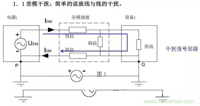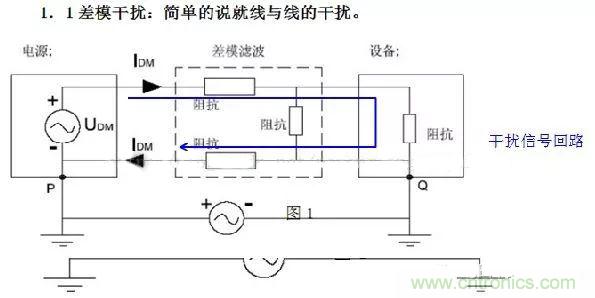 2.差模干擾(Differential-mode Interference):兩導(dǎo)線上的干擾電流,振幅相等,方向相反稱為差模干擾。(任何兩個載流體之間不希望有的電位差)