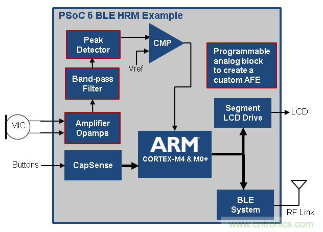 圖 10: PSoC 6 BLE AFE 示例─ 光學(xué)體積描技術(shù)(PPG ) *
