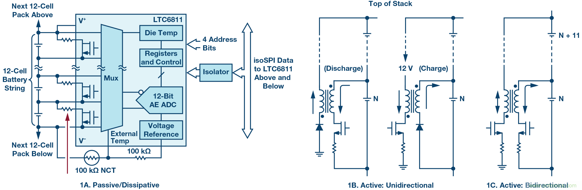圖1. 電池單元均衡典型拓撲結構。